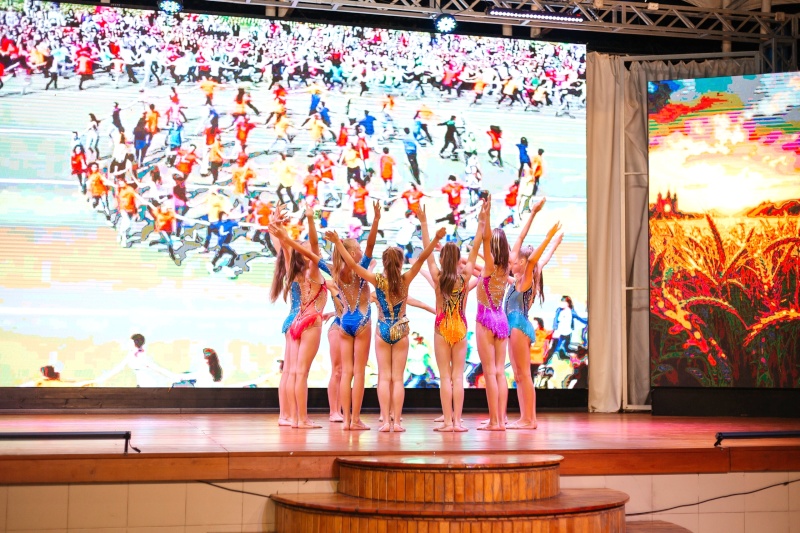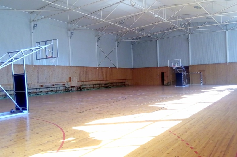 - Многофункциональный крытый кондиционированный спортивный зал (40м х 25м х 10м) с покрытием многослойная паркетная доска, в наличии 2 гимнастических ковра (14м х 14м), ролл маты 150м2 Высота потолков – 11 метров.