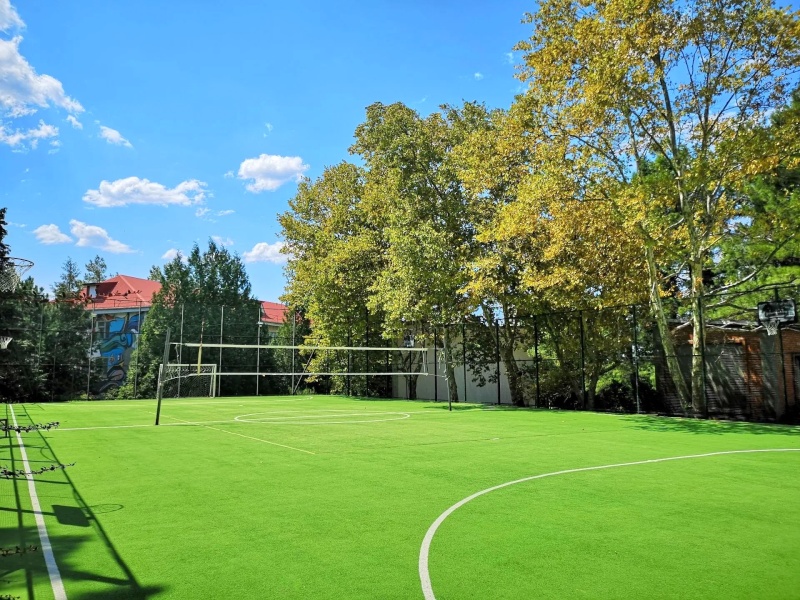 - Две многофункциональные спортивные площадки (20м х 25м) с профессиональным покрытием для игры в волейбол, баскетбол, большой теннис.